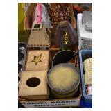 Antiques and Collectibles: 20+ Lots of Costume and Other Jewelry, 1890’s Antique Theft Device for Pocket Watches, 30 Various Lots of Comic Books, Vintage Carolers, Gray Granite/Porcelainware, Pottery Crocks and Jugs (Some w/Blue), Vintage Postcards, Large Amount of Baking Molds, Large Amount of Vintage Stereo Cards, Clothing and Uniform Jackets, Folding, Pen, and Sheath Knives, Framed Prints and Pictures, Large Amount of Halloween and Christmas Decorations, Country Primitive Decorations, Ladies Purses, Quilts, Tinware, Western Collectibles, Roy Rogers Collectibles, Lone Ranger Silver Bullet, Miniature Fire Helmets, Old Hunting and Fishing Licenses, Old Bicycle License Plates, Ryker Cases, Black Americana Cast Banks, Game Commission Patches, Woodware, Chocolate Molds, Miniature Porcelain Ladies Heads, Wooden Advertising Boxes, Advertising Items, Hot Wheels, Matchbox Cars, Slot Cars, and Other