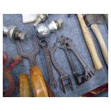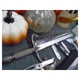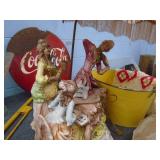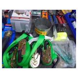 Giant Halloween Figure (needs work), Craftsman Table Saw, Caps, Metal Signs, Guitar w/ Case, Vintage Cow Bell, Lap Top Computer and Tablets, Pottery, Oil Lamps, Cleaners, Toys, Electric Fire Place TV Heater, Lots of Pet Supplies, Shop Vacuum, Fishing Poles, Yard Tools, Cordless Tools, Chain Saws, Heaters, Appliances, Rechargeable Batteries, Hand Tools, Air Compressor, Portable AC Unit, Mouse Traps, Garage Door Opener, Regular and Soaker Hoses, Mini Fridge, Floor Lamp, Wheel Barrow, Pump, Tampers, Folding Tables, Tiller, Lounge Chair, Basket Full of Willow Tree Figures, Knives and Daggers, Class & Crystal Christmas Tree, Hand Made Walking Sticks, Bags of Jewelry, Old Bowls and Pottery, Metal Bird Feeder w/ Plane on top, Vintage Pepsi Cooler, Tackle Boxes Loaded w/ Lures, Camel Back Clock, Lays Jar, New Safety Gate, Vintage Coke Tray, Camo Stuff, Bacon Presses and Cast Iron Pots, Large Victorian Lamp, Heart Dinner Bell, Many Box Lots, Storage Totes and More. With Our Four for a Dollar / Free Tables.