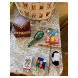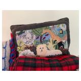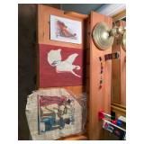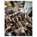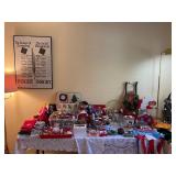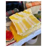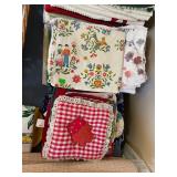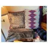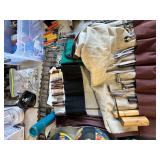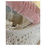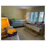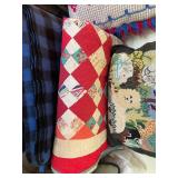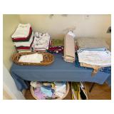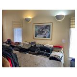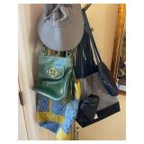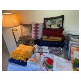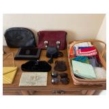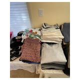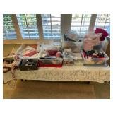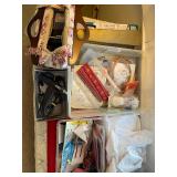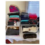 Vintage linens, blankets, women’s handbags, scarves, designer sunglasses, gloves, hats and visors, shoes, jackets, quilts, decorative pillows, sewing supplies, scrap materials, Afghans, and several twin mattress sets.