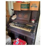 Glassware, Household Furnishings, Vintage Tractor Partial List: International Harvester Farmall Vintage Tractor, Brickwede China Cabinet, Kitchen Table and 4 Chairs, Twin Wooden Bed Frame, China Cabinet, Curio Cabinet, La-Z-Boy Recliner, Livingston Brand Couch, Table Lamps, Bushnell Telescope, Chair and Sewing Machine Desk, Milk Glass Bead Table Lamps, Singer Fashion Mate Sewing Machine , Home Decor, 6’ Aluminum Stepladder, Petmate Pet Carrier, Assorted Electronics, Panasonic Microwave Oven, Cobalt Glass, Ruby Red Candy Dish, Ruby Red Dish, Viking Glass Persimmon Orange Goose, Carnival Glass Candy Dish, Green Glass Ruffled Glass Vase, Amber Moon and Stars Glass Candy Dish, Viking Glass Vase, Ruffled Glass Basket, Viking Glass Thistle Pink Glass Vases, Viking Glass Stretch Vases, 10” Cast Iron Skillet , Last Supper Picture, Homer Laughlin Serving Platter, Bathroom Scales, Vintage Mason and Hamlin Organ, Vintage Washing Machine, 23 Cubic Foot Chest Freezer, Werner 8-16’ Aluminum Ladder, 4 Gallon Stoneware Crock, International Cub Cadet 86, Blade Attachment, 5’ Disk Attachment, Cutter Bar Attachment, Vintage Milk Can, Hoosier Cabinet