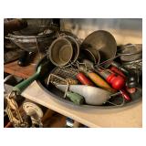 ENTER THROUGH THE FRONT DOOR - Backyard and Garage is open, too. First 60 photos just added. Please bring help if you plan on buying furniture. This fabulous In-Person Estate Sale showcases the historic collection of culinary historian Lou Greenstein in North Reading, MA and is a continuation of 3 auctions - a houseful of unique and interesting historic items. It is almost like walking through a museum, a true time capsule. This home has 2 Floors plus 2 car Garage and Backyard open for shopping. The basement showcases the fabulous historic collection of culinary historian Lou Greenstein and has 1800s through mid-1900s along with newer culinary collectibles. Every kitchen gadget from the past you can imagine, cast iron meat grinders, mixers, choppers, and on and on - some of these items are still in their original box. We have quite a few boxes of Ephemera that include restaurant & kitchen memorabilia, an entire wall of vintage cookbooks, antique books (not related to culinary), vintage cooking magazines, professional chef educational books, vintage recipe books and cards, framed early 1900s culinary wall decor and more. An entire hallway dedicated to HALLOWEEN - Costumes and Accessories! 2 rooms filled with historic 1800s-mid 1900s culinary collectibles (multiples of just about everything) for use or as primitive farmhouse decor. An early 1900s chuck wagon fireless food heater, vintage aprons, and more! The top floor has art, home decor, furniture, books (including many antique), and more. The backyard will be set up with tables of more vintage collectibles, patio furniture including 3 patio sets, and much more! The 2 car garage is also filled to the brim with chef and catering supplies, lawn and garden, many fishing poles, an antique ice box, a professional chrome wire bakers rack, large chrome shelves on wheels, party supplies, and more! This estate sale is not to be missed - it's happening over 2 days! |