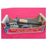 Items of Interest: Mid- Modern Century Pink Stand Ashtray, Big Bang 60mm Toy Cannon, Whimsiclay Cat Collection, Cue Stick Walking Cane, Gilpin & Hittner Inc. Pgh, PA Metal Milk Can, Framed US Postal Honors Vietnam Veterans & US Navy Uniforms, Beautiful 5 Piece Pine Bedroom Set: Queen Bed, (2) Nightstands, Dresser w/ Mirror & Highboy Dresser, Patio High Table w/ (4) Chairs, Sunny Recumbent Bike, Waring Pro Meat Slicer, Cast Bird Bath/Fountain & 7' Inflatable Halloween.