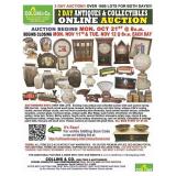 Exciting 2 day antique and collectible auction with each auction having 800 plus lots. Large hand carved wood horse carousel. Taxidermy turkey and other items. Antique childs rocking horses, several antique clocks, oak oval front countertop store showcase, hand painted wooden decoys, collectible decanters, uranium glass, hurricane lamps, antique quilts, Blue Ridge, Cash Family, Clinchfield, Iron Mountain pottery, horse hair, Fenton McCoy pottery, Sports cards, several Southern stoneware pottery jugs, churns & pots, Apothecary bottles, Epherma and much more. These auctions are loaded with great items. ALL BIDS START AT $1.00. 806 Dixie Queen Plug Cut Tobacco Tin with Lid Handle and Metal Latch still attached does have rust/scratches/dents shows age and use 807 Antique George Washington Cut Plug Tin with Lid Handle and Metal Latch still attached does have rust/scratches/dents shows age and use 808 Union Leader Cut Plug & Dixie Queen Plug Cut Tins with Lids Handles still attached both have rust/scratches/dents shows age and use 809 Pedro Cut Plug Smoking Tobacco Tin Handle and Metal Latch still attached does have rust/scratches/dents shows age and use 810 Twin Oaks Casket Style Tobacco Tin does have rust/scratches/dents shows age and use 811 Mayo's Cut Plug Tobacco & Tiger Bright Sweet Tins Handle and Metal Latch still attached both have rust/scratches/dents shows age and use 812 George Washington Cut Plug Round Tin with Lid does have rust/scratches/dents shows age and use 813 Pedro Cut Plug Smoking Tobacco Tin Handle and Metal Latch still attached does have rust/scratches/dents shows age and use 814 F.F. Adams & Co Peerless Tobacco Tin with Lid Milwaukee Handle still attached does have rust/scratches/dents shows age and use 815 Sensation Cut Plug Casket Style Tin with Lid P. Lorillard Co. Handle still attached does have rust/scratches/dents shows age and use 816 Oceanic Cut Plug Tobacco Tin with Lid Scotten, Dillion Co Detroit Michigan & Sensation Cut Plut Tin W/Lid P. Lorillard Company does have rust/scratches/dents shows age and use 817 2 Union Leader Pocket Tobacco Tins w/Lids Redi Cut tin has a hole/dent in side a top bent Handle and Metal Latch still attached does have rust/scratches/dents shows age and use 818 Satisfaction Cut Plug Tobacco Tin w/Lid Handle and Metal Latch still attached does have rust/scratches/dents shows age and use 819 2 J.G. Dill's Pocket Tobacco Tins with Lids Cube Cut Plug in Oblong Tin Dill's Best Cut Plug in Square Tin does have rust/scratches/dents shows age and use 820 Patterson's Seal Cut Plug Tobacco Tin w/ Lid & a Philadelphia Hand Made Perfecto Tin w/Lid does have rust/scratches/dents shows age and use 821 Gail & Ax Navy Tobacco Tin w/Lid Handle and Metal Latch still attached lid had two tears in metal does have rust/scratches/dents shows age and use 822 Granger Pipe Tobacco Rough Cut Round Tin w/Lid very few rust/scratches/dents shows age and use 823 Kentucky Club White Burley Smoking Tobacco Tin with Lid does have rust/scratches/dents shows age and use 824 Kentucky Club Pocket Pipe & Cigarette Tobacco Tin does have rust/scratches/dents shows age and use 825 Large Sweet Burley Light Tobacco Tin with Lid does have rust/scratches/dents shows age and use 826 Buckingham Bright Cut Plug Smoking Tobacco Tin John J. Bagley & Co with lid does have rust/scratches/dents shows age and use 827 2 Round Tobacco Tins (no lids) F.F. Adams & Co. Peerless Tobacco Milwaukee & War Eagle Cigars (hard to read wording) does have rust/scratches/dents shows age and use 828 Red Bell Light Fine Cut Round Tobacco Tin w/lid Handle still attached/paper is torn does have rust/scratches/dents shows age and use 829 Blue Boar Rough Cut Tobacco Tin w/Lid The American Tobacco Co. U.S.A. does have rust/scratches/dents shows age and use 830 Falk's American Mixture Tobacco Tin w/Lid Talk Tobacco Co. Richmond Va. Paper is discolored, had tears and torn does have rust/scratches/dents shows age and use 831 J. Wright & Co's Pride of Virginia Tin does have rust/scratches/dents shows age and use 832 Jewel of Viriginia Cameron & Cameron Tin Richmond Va. U.S.A. does have rust/scratches/dents shows age and use 833 Gold Shore Cut Plug Tobacco Tin w/ Lid JNO. J. Bagley & Co Detroit, Mich does have rust/scratches/dents shows age and use 834 Just Suits Cut Plug Tin w/Lid Buchanan & Lyall Co of New York, NY USA does have rust/scratches/dents shows age and use 835 Large Sterling Light Tobacco Tin w/Lid Spaulding & Merrick Liggett & Myers Tobacco Co 4 dozen 5 cent packages does have rust/scratches/dents shows age and use 836 Postmaster Smokers 2 for 5 cents Round Metal Tin w/Lid Factory No. 17 Dist. VA 50 has f 4 holes in top and bottom does have rust/scratches/dents shows age and use 837 T & B Renowned Myrtle Cut Tobacco Tin w/Lid JNO. E Tuckett & Sons State of Illinois does have rust/scratches/dents shows age and use 838 Velvet Pipe and Cigarette Tobacco Tin w/Lid Liggett & Myers Tobacco Co Made from Kentucky Burley Leaf Tobacco does have rust/scratches/dents shows age and use 839 Pride of Virginia Slice Plug Tin w/Lid Factory No. 42, 2nd District, State of Virginia has a name carved into bottom does have rust/scratches/dents shows age and use 840 Good Old Summer-Time Long Cut Tobacco Round Tin w/ Lid Spaulding & Merrick Liggett & Myers Tobacco Co State of Missouri paper is torn and parts missing does have rust/scratches/dents shows age and use 841 Large Sterling Tobacco Round Tin w/Lid Advertising is hard to read in some places does have rust/scratches/dents shows age and use 842 Twin Oaks Casket Style Tobacco Tin w/Lid large dent on top does have rust/scratches/dents shows age and use 843 2 Styrofoam Floating Duck Decoys with Swivel Heads both show use and age also have some knicks and dents 844 Vtg Vicor Veri Lite Duck Decoy Paper Mache Shows age some paint missing some scratches/dents 845 Vtg Plastic Duck Decoy Shows age some paint missing some scratches/dents 846 Vtg Hand Carved Wooden Duck Decoy ha
