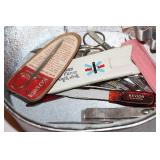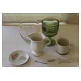 CATALOG TEXT BELOW: 1 - Antique Oil Lamp 2 - Pitcher and Bowl (Japan) 3 - Serving Platters and Bowl 4 - Roseville 653-6 White Rose Jardiniere 5 - Oil Lamp Burner 6 - Antique Jelly Cabinet NICE ! 7 - Antique Mirror 8 - Pair of Hall Pottery Vases W-6, 7 1/4" 9 - 2 Pair of Antique Eye Glasses Gold Filled 10 - 2 Vintage Ring Jewelry Boxes 11 - Hand Mirrors 12 - Vanity Mirrored Tray & 2 Perfume Bottles 13 - Vintage Pink Apron 14 - Antique Victorian Dresser/Mirror Chest 15 - Antique Sad Iron 16 - Goofus Glass Oil Lamp (Converted) 17 - Pair of Antique Goofus Glass Miniature Oil Lamps 18 - Brass Cricket Box 19 - Two New Testaments 20 - Beautiful New Oxford Double Seater School Desk 21 - 7 Vintage Photos of Children Framed 22 - Serving Bowl & Platter with Glass Salad Set Server 23 - Hobnail Ruffled Bowl 24 - Set of 6 Glasses 25 - LE Smith Amberina Moon & Stars Candy Compote 26 - Pink Depression Glass Handled Plates 27 - Beautiful Cranberry Glass Vase 28 - Harvest Tea Pot and Glass Bowl 29 - Glass Serving Bowl and More 30 - Assorted Glassware 31 - Silver Plated Serving Tray 32 - Fostoria Divided Serving Dish, Platter & Pink Bowl 33 - Beautiful Orange and Yellow Bowl and Plate 34 - Art Glass Vase 35 - Retro Aluminum Grease Jar 36 - Vintage Carnival Glass Divided Server 37 - Uranium Glass Plate 38 - Vintage Indiana Carnival Iridescent Marigold Plate 39 - Klever Kleever 40 - Pink Depression Glass 41 - 2 Vintage Round Belgium Velvet Table Doilies 42 - 5 German Luster Ware Plates 43 - Cigar Label Bowl - Terrific Art Bowl 44 - Set of MId Century Furniture Legs 8" 45 - News Leader & Lockwood Luminary Headlines 46 - 2 Electric Skillets 47 - Rolling Metal Clothing Rack 48 - Silk Japanese Night Gown 49 - Olympus OM 10 Camera with Extras 50 - Hard Violin Case 51 - Pair of Stereo Speakers 52 - Wicker Laundry Basket 53 - Vintage Wood Coat Rack Hall Tree 54 - Twin Size Matress 55 - 2 Vintage Rugs 56 - 2 Vintage Photo Frames 57 - Landscape Print Framed 58 - Black and White Photo Framed 59 - Vintage Standard Oil Products Photograph 60 - Vintage Winter Scene 61 - Vintage Serving Bowls and Coffee Cups 62 - Vintage Black and White Photographs Pictures 63 - Vintage Foil Art & Religious Plaque 64 - Trinity Lutheran Church Freistatt MIssouri MIrror 65 - Vintage Red & White Enamel Ware Sauce Pan/Lid 66 - 2 VHS Tapes President George Bush in Freistatt 67 - RCA Indoor Antenna 68 - Vintage Shell Gasoline Plastic Sign 69 - Vintage Silver Plated Bowls, Ashtray and Spoons 70 - Anchor Hocking Manhattan Bowl with Handles 71 - Houze Art Bowl-President of the U.S. Seal & DC 72 - 2 Art Deco Glass Photo Frames 73 - Antique Sterling China (Japan) Creamer and Sugar B 74 - VIZIO Television with Remote Control 75 - Panasonic Boom Box AM FM Radio CD & Cassette 76 - Phillips VCR & Long HDMI Cable 77 - Pair of Vintage Utah Speakers Model WD-90 78 - Vintage Valentines, Post Cards & Photos 79 - Vintage Greetings Cards 80 - Vintage Black and White Photographs pictures 81 - Vintage Punch Candy Tin 82 - Metal Canister Set with Yellow Roses 83 - Retro Metal Canister Set 84 - Vintage Pitcher 85 - Beautiful Vase with Blue Birds As Is (Repaired) 86 - Vintage McCoy Pottery Leaves & Berries Planter 87 - Roseville Pottery Apple Blossom Green Vase 88 - Hull Pottery Dogwood Glazed Pitcher 89 - Beautiful Angel 90 - Inarco Pottery Planter 91 - Franz Metronome 92 - Sterling Silver Candy Compote 93 - Vintage Weather Wizard - Chicago 94 - 2 Milk Glass Items 95 - Pair of McCoy 24 Kt Gold Vases 96 - Japan 7 Inch Vintage Figurine 97 - Vintage "Lamar Bottling Works-Lamar, MO" Bottle 98 - Vintage Figurine & Trinket Box 99 - Vintage Fenton Red Glass Swan 100 - Vintage Game and Playing Cards 101 - Vintage 22 Karat Gold Creamer & Sugar 102 - Vintage Ostrich Planter 103 - Vintage Pyrogene Green Depression Top Hat 104 - Milk Glass Bowl & Glass Flower Frog 105 - Adorable Doll 106 - Glass Plates 107 - Pair of Wooden Shoes 108 - Hand Blown Glass Swan 109 - Anchor Glass Serva Snack Set 110 - Indian Chief Copper Art Framed 111 - Holy Bible 112 - Offie Supplies and Desk Necessities 113 - Aluminum Pot 114 - Rossini Empoli Glass Decanter WOW Mid Century 115 - Glass Dish Set 116 - Lot of Post Cards 117 - Glass Serving Items and Jack Daniels Coasters 118 - Walt Disney's Nikki Wild Dog Booklet & Wood Cutout 119 - Eames Era Lucite Grapes in Purple 120 - 2 Mixing Bowls--Fire King & Pyrex 121 - Vintage Lucite Waste Basket 122 - 2 German Beer Steins Mugs 123 - Pittsburgh Paints Glass House Coin Bank 124 - Lot of Assorted Picture Frames 125 - Lot of Assorted Frames, Award Plaques and Ephemera 126 - Lot of Assorted Picutre Frames 127 - Lot of Picture Frames 128 - Vintage Print 129 - Stereo Cabinet 130 - 2 Bookshelves 131 - Antique School Desk 132 - Last Supper Print 133 - Aphgan, Throws, Throw Pillow 134 - Vintage Chair 135 - Mid Century Magazine Rack 136 - Oscillating Fan 137 - Vintage Lithograph of Jesus by Warner Sallman 138 - Winter Peaks by Wilmer 52 x 28 139 - Vintage Prints 140 - MId Century Walnut Coffee Table Brown Saltman 141 - 1912 Print Framed 142 - 3 Serving Trays 143 - Set of 8 Pepsi "Have a Toast to Freedom" Glasses 144 - Ernte Fest Mugs - Freistatt, Missouri 145 - 3 Vintage Tins - 146 - Antique Hand Painted Creamer and Sugar 147 - Vintage Groovy Plates 148 - Holiday Servers 149 - Popegosser China "Florence" Pattern Popegosser China "Florence" Pattern 150 - Retro Aluminum Glasses, Bowls and Atomizer 151 - Retro Ice Bucket 152 - Lot of War Ration Books 153 - Dietz Red Lantern 154 - Aluminum Roaster & Double Boiler 155 - Antique Oil Lamp with Shade 156 - Metal Molds and Tea Pot 157 - Lot of Corning Ware-All for one money! 158 - Vintage Ice Bucket Barware 159 - Rotary International Golden Anniversary Glasses 160 - Lot of Vintage Black & White Photographs Picutres 161 - HUGE Lot of Vintage Photos Photographs Pictures 162 - Lot of Assorted Fans 163 - Lot of Assorted Plates and Tray 164 - Antique Bailey Wood Plane Tool 165 - Vintage Walt Disneyland Ephemera & Pen 166 - Lot o