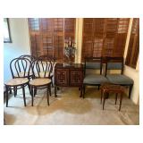 Dining Room: Limoges China Eggshell Nautilus China Barware Vintage Sweet Table and Chair Set Asian Lacquered Panels Vintage Buffet