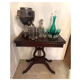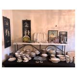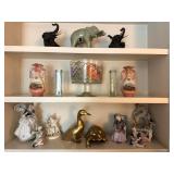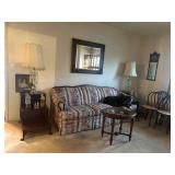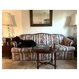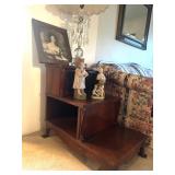 Living Room: Granny Chic Sofa Vintage End Tables Bentwood Chairs Turtle Collection Carnival Glass Capodimonte Antique Clocks