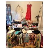Master Bedroom: Vintage Ladies Clothing & Accessories Box Collection Avon Perfumes Vintage Linen Puppets Sewing & Notions, Mini Singer Sewing Machine Furniture by Kling Beautiful Handmade Baby/Children’s Clothing