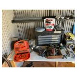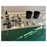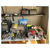 Collector plates ( Gone with the wind) Raiders football team gear, miscellaneous Avon vintage cologne, miscellaneous other hot wheels, silverware,miscellaneous glassware,kitchen hand towels, coffee pot, vintage cameras, luggage, Christmas tree new box, vintage radio, collector plates , miscellaneous kitchen glass, dish sets, vintage white gold trim dish set , tons of hand tools, wrenches. Drill bits, power tools, bench grinder, tool box, ladder, round up, chop saw, table saw, antique marble top dresser, Chester drawers, lamps, luggage,tower fan, desk, office chair, LG TV, dinning table and chairs |