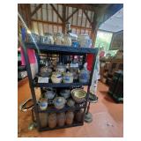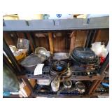 Large Assortment of Car Parts - Hubcaps, Rims, Taillights, Bumpers, Gas Cans, Acura Steering Wheel, Jumper Cables, Oil, Coolant, Car Maintenance Fluid, Books