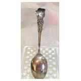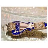 Sterling Silver Souvenir Spoons including Native American Enamel Sterling Americana Patriotic Souvenir Spoon~ George Washington Gorham Versailles Art Nouveau Sterling Spoon Paye & Baker New York Statue of Liberty Good Luck Souvenir Spoon Enamel Birds Souvenir Spoon Art Nouveau Sterling Enamel Souvenir Spoon ~ San Jose Mission San Antonio TX Watson Sterling Souvenir Spoon Native American Oklahoma