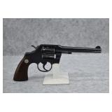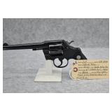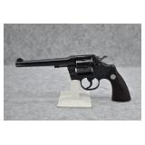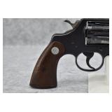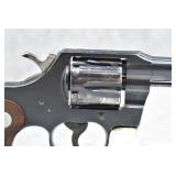 14R. Colt – Mod. Official Police – 38 Spl. Cal. Double Action Revolver – w/6” Barrel w/Blade Front & Notch Rear Sights – Blued Finish – w/Colt Silver Medallion Checkered Wood Grips