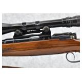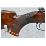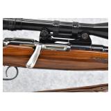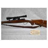 24R. Steyr Daimler – Mod. 3170 Mannlicher Schoenauer – 243 Win. Cal. Bolt Action Rifle – w/22” Barrel w/Hooded Front & 2 Leaf Adj. Rear Sights – Blued Finish – w/Deluxe Checkered Capped Pistol Grip Wood Stock w/Factory Butt Plate – w/Double Set Triggers – w/Brown Leather Sling – w/Bausch & Lomb Balvar 8A 2.5-8x40mm Period Scope & Bausch & Lomb Mounts