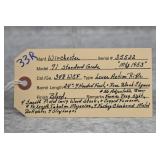 33R. Winchester – Mod. 71 Standard Grade – 348 WCF Cal. Lever Action Rifle – w/24” Barrel w/Hooded Front Sight & Rear Dovetail Blank w/Lyman #56 Adj. Rear Receiver Peep Sight & Half Length Tubular Magazine – Blued Finish – w/Smooth Pistol Grip Wood Stock w/Factory Checkered Metal Butt Plate – w/Sling Loops– Mfg. in 1953