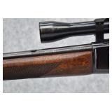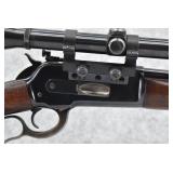34R. Winchester – Mod. 71 Deluxe – 348 WCF Cal. Lever Action Rifle – w/24” Barrel w/Hooded Front Sight & Rear Dovetail Blank w/Factory Bolt Mounted Peep Sight & Half Length Tubular Magazine – Blued Finish – w/Deluxe Checkered Pistol Grip Wood Stock & Matching Wood Forearm w/Factory Checkered Metal Butt Plate – w/Weaver K-4 60B Rifle Scope & ECHO Side Mount & Rings – Mfg. in 1941