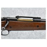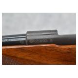 46R. Winchester – Mod. 70 (Post-64) – 338 Win. Mag. Cal. Bolt Action Rifle – w/24” Barrel w/Hooded Front & Adj. Ramp Rear Sights – Blued Finish – w/Checkered Capped Pistol Grip Wood Stock w/Factory Recoil Pad – w/Redfield 1pc. Scope Base