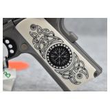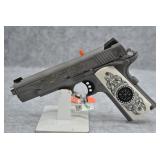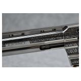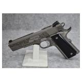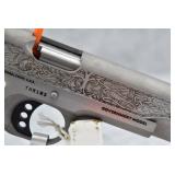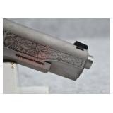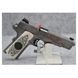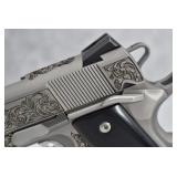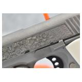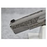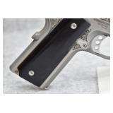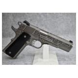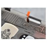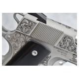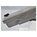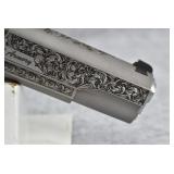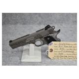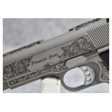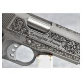 48R. Springfield Armory – Mod. 1911-A1 “Premier Grade” – 45 Auto Cal. Semi-Auto Pistol – w/5” Barrel w/3-Dot White Sights – Stainless Finish – w/Ebony Grips – Tyler Gun Works Premier Grade, Hand Drawn Art by Rocky Sharp – Slide & Frame Deep Cut Engraved – w/Mag – New w/Factory Box, Soft Case & Manual – A Must See!