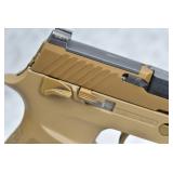 49R. Sig Sauer – Mod. M17 – 9mm Cal. Semi-Auto Pistol – w/4 ½” Barrel w/3-Dot Night Sights – Flat Dark Earth Finish – w/Textured Factory Pistol Grip – w/2 Factory 21Rd Mags & 1 Factory 17Rd Mag – w/Factory Box, Manual & M17 COA