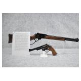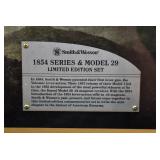 50R. Extremely Scarce & Limited Smith & Wesson Special Edition – Model 1854 & Model 29 Matching Number Cased Set, #001 of 100!! – Included in this Set is a Smith & Wesson Model 1854 – 44 Rem. Mag. Cal. Lever Action Rifle – w/19” Barrel w/Beaded Front & Ghost Peep Rear Sights w/Threaded Muzzle & Protector. This Rifle is Fitted w/A Highly Figured Capped Pistol Grip Wood Stock w/Rubber Recoil Pad & Matching Highly Figured Wood Forearm – Receiver & Barrel Are Engraved & Gold Inlaid – Accompanying The Model 1854 is a Smith & Wesson Model 29-10 – 44 Rem. Mag. Cal. Double Action Revolver – w/6 ½” Barrel w/Ramp Front & Adj. Rear Sights. Fitted w/Factory Smooth Wood Grips w/S&W Medallion. The Frame, Cylinder & Barrel All Bear the Same Scroll Engraving & Gold Inlay as the Rifle – Both Guns Are Blued Finish – Smith & Wesson Originally Offered This First Set in the Series on a Gunbroker Auction on February 27th Where All Proceeds From the Sale Went to Support the Rocky Mountain Elk Foundation & Safari Club International. On March 14th Serial #002 Was Put Up For Public Auction on Gunbroker to Raise Additional Funds for the RMEF & SCI. It was Stated That Set #002 Was Going to be the Final Set Available for Public Bidding Out of 100 Sets. To Our Current Knowledge it Holds True That This Set #001 & Set #002 Are The Only Sets to Be Available for Public Purchase!! The Rifle & Revolver Both Come in their Respective Pelican Hard Cases as Well as Their Shipping Boxes. This Set Also Comes w/the Factory S&W Display Case w/Shipping Box. Here is Your Chance to Own Not Only Set #001, But One of Only Two Sets Offered Into Public Hands!