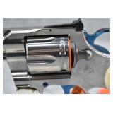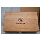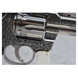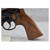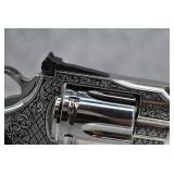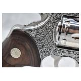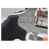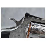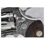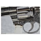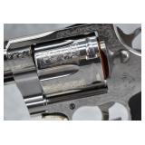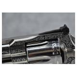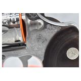 51R. Smith & Wesson – Mod. 29-10 Factory Engraved – 44 Mag. Cal. Double Action Revolver – w/4” Barrel w/Ramp Front & Adj. Rear Sights – Blued Finish – w/Factory Checkered Wood Grips w/Panel Engraving, Frame, Cylinder & Barrel All Have Small Scroll Engraved Accents – New w/Factory S&W Box, Factory Hard Case, Manual & Tools – Also Accompanied by Factory Wood Presentation Case w/Keys, All w/Shipping Boxes