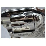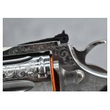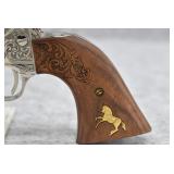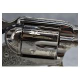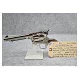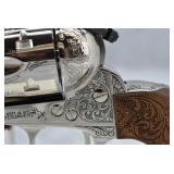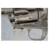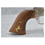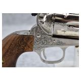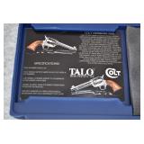 52R. Colt – Mod. Single Action Army (P1850-LDN) – Talo Edition #95 of 500 Nimschke Engraved Limited Edition – 45 Colt Cal. Single Action Revolver – w/5 ½” Barrel w/Blade Front & Groove Rear Sights – Nickel Finish – w/Factory Hard Wood Grips w/Gold Rampant Colt & Nimschke Style Engraving on Both Grip Panels, Frame, Cylinder & Barrel All Bear Nimschke Style Engraving – New w/Factory Hard Case, Manual & Talo Advertising Card