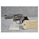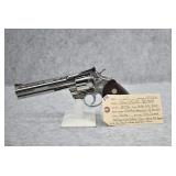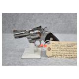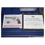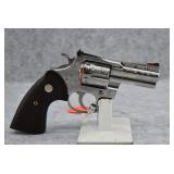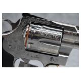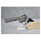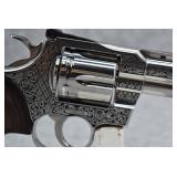 56R. Colt – Mod. Python (SP3WTS) – Davidsons Exclusive Engraved Special Edition – 357 Mag. Cal. Double Action Revolver – w/3” Vent-Rib Barrel w/Ramp Front & Adj. Rear Sights – Stainless Finish; Frame Cylinder & Barrel Are All Armory Grade Cut Engraved – w/Factory Checkered Wood Grips – New w/Factory Hard Case, Manual & Factory Orange Hang Tag