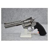 57R. Colt – Mod. Python (SP6WTS) – 2020 Engraved Special Edition – 357 Mag. Cal. Double Action Revolver – w/6” Vent-Rib Barrel w/Ramp Front & Adj. Rear Sights – Stainless Finish – Frame & Barrel Etch Engraved – w/Factory Checkered Wood Grips w/Colt Medallion – New w/Factory Hard Case & Manual