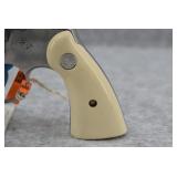 390R. Ruger – New Model Single Six – 22 Cal. Single Action Revolver – w/5 ½” Barrel w/Ramp Blade Front & Adj. Rear Notch Sights – Stainless Finish – w/Ruger Eagle Medallion Smooth Wood Grips – As New