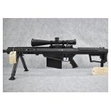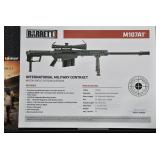 61R. Barret – Mod. M107A1 International Military Contract – 50 BMG Cal. Recoil Operated Semi-Auto Rifle – w/29” Fluted Barrel w/Muzzle Brake – Black Cerakote Finish – w/Checkered Synthetic Pistol Grip, Synthetic Cheek Piece, Rubber Recoil Pad, Full Top Picatinny Rail, Titanium Monopod & Bi-Pod – w/2 Factory 10Rd Mags – w/Serialized & Matched Upper & Lower Receivers – A Limited Quantity of These Were Put Up For Purchase As a Result of an International Military Contract Overrun & Have Undergone Rigorous Testing As Per the Original Contract – w/Leupold Mark 5 HD 5-25x56 Scope w/Side AO – w/One Piece Ring Mount & Caps – w/Pelican Hard Case, COA, Barrett Manual & Otis Cleaning Kit – Gov’t Tested Only!!