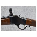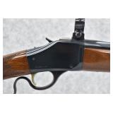 72R. Browning – Mod. 1885 High Wall – 45-70 Govt Cal. Falling Block Rifle – w/28” Octagon Barrel w/Blade Front & Adj. Rear Sights – Blued Finish – w/Deluxe Checkered Straight Grip Wood Stocks w/Factory Butt Pad – w/Factory Sling Loops – w/Browning 2pc Scope Rings & Bases