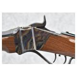 74R. Shiloh Sharps – Mod. 1874 Saddle Rifle – 45 (45-70) Cal. Falling Block Rifle – w/28” Octagon Barrel w/Globe Front & Adj. Rear Ladder Barrel Sights w/MVA #130 Midrange Vernier Rear Tang Peep Sight – Matte Blued/Case Hardened Finish – w/Straight Grip Wood Stock & Forearm w/Ebony Pistol Grip Extension w/Raised Cheek Piece & Shotgun Butt Plate – w/Double Set Triggers – w/Extra Globe Sight Inserts & Original Front Blade Sight – w/40Rds of Loaded 45-70 & 140ct. 45 Cal. 535gr. Montana Precision Swaging Bullets
