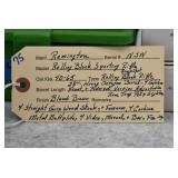 75. Remington – Mod. Rolling Block Sporting Rifle – 40-65 Cal. Rolling Block Single Shot Rifle – w/28” Heavy Octagon Barrel w/Globe Front & Pedersoli Vernier Adjustable Rear Tang Peep Sights – Blued/Brown Finish – w/Straight Grip Wood Stocks w/Carbine Metal Butt Plate – w/Scope Base – w/Video, Manual & Box For Pedersolit Vernier Sights – w/62ct 40 Cal. 400gr. Montana Precision Swaging Bullets, Lyman 40-65 Dies & 32ct Loaded 40-65 & 64pcs. 40-65 Brass – Complete Package