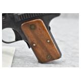 1R. Colt – Mod. Ace Commercial Model – 22LR Cal. Seim-Auto Pistol – w/4 ¾” Barrel w/Blade Front & Adj. Rear Notch Sights – Blued Finish – w/Checkered Wood Grips – w/Factory Detachable Two-Tone Magazine – Serial #432 – Mfg. in 1931, 1st Year of Production