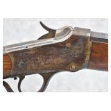416. Massachusetts Arms Co. – Improved Hunters Rifle No. 8 – 35-30 Maynard Cal. Single Shot Rifle – w/26” Octagon to Round Barrel w/Sporting Front & Rear Barrel Sights w/Elevating Tang Peep Sight – Blued/Gray Finish – w/Straight Grip Wood Stock w/Factory Butt Plate, Non Forearm Model