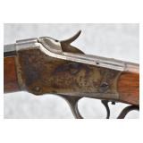 418. Winchester – Mod. 1885 Low Wall – 32-20 WCF Cal. Falling Block Rifle – w/28” #2 Barrel Weight Octagon Barrel w/Beech Combo Front (rear Dovetail Blank) & Rear Tang Adj. Peep Sights – Blued/Gray Finish – w/Straight Grip Wood stocks w/Crescent Metal Butt Plate – Mfg. in 1891