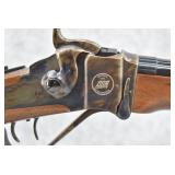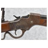 416.        Massachusetts Arms Co. – Improved Hunters Rifle No. 8 – 35-30 Maynard Cal. Single Shot Rifle – w/26” Octagon to Round Barrel w/Sporting Front & Rear Barrel Sights w/Elevating Tang Peep Sight – Blued/Gray Finish – w/Straight Grip Wood Stock w/Factory Butt Plate, Non Forearm Model