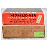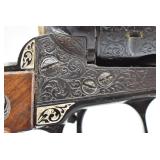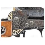 50R.       Extremely Scarce & Limited Smith & Wesson Special Edition – Model 1854 & Model 29 Matching Number Cased Set, #001 of 100!! – Included in this Set is a Smith & Wesson Model 1854 – 44 Rem. Mag. Cal. Lever Action Rifle – w/19” Barrel w/Beaded Front & Ghost Peep Rear Sights w/Threaded Muzzle & Protector.  This Rifle is Fitted w/A Highly Figured Capped Pistol Grip Wood Stock w/Rubber Recoil Pad & Matching Highly Figured Wood Forearm – Receiver & Barrel Are Engraved & Gold Inlaid – Accompanying The Model 1854 is a Smith & Wesson Model 29-10 – 44 Rem. Mag. Cal. Double Action Revolver – w/6 ½” Barrel w/Ramp Front & Adj. Rear Sights.  Fitted w/Factory Smooth Wood Grips w/S&W Medallion.  The Frame, Cylinder & Barrel All Bear the Same Scroll Engraving & Gold Inlay as the Rifle – Both Guns Are Blued Finish – Smith & Wesson Originally Offered This First Set in the Series on a Gunbroker Auction on February 27th Where All Proceeds From the Sale Went to Support the Rocky Mountain Elk Foundation & Safari Club International.  On March 14th Serial #002 Was Put Up For Public Auction on Gunbroker to Raise Additional Funds for the RMEF & SCI.  It was Stated That Set #002 Was Going to be the Final Set Available for Public Bidding Out of 100 Sets.  To Our Current Knowledge it Holds True That This Set #001 & Set #002 Are The Only Sets to Be Available for Public Purchase!!  The Rifle & Revolver Both Come in their Respective Pelican Hard Cases as Well as Their Shipping Boxes.  This Set Also Comes w/the Factory S&W Display Case w/Shipping Box.  Here is Your Chance to Own Not Only Set #001, But One of Only Two Sets Offered Into Public Hands!