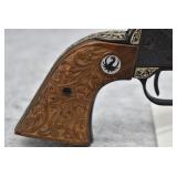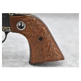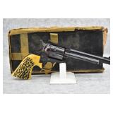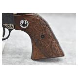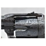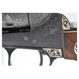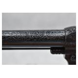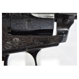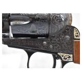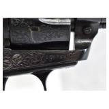 52R.       Colt – Mod. Single Action Army (P1850-LDN) – Talo Edition #95 of 500 Nimschke Engraved Limited Edition – 45 Colt Cal. Single Action Revolver – w/5 ½” Barrel w/Blade Front & Groove Rear Sights – Nickel Finish – w/Factory Hard Wood Grips w/Gold Rampant Colt & Nimschke Style Engraving on Both Grip Panels, Frame, Cylinder & Barrel All Bear Nimschke Style Engraving – New w/Factory Hard Case, Manual & Talo Advertising Card