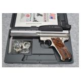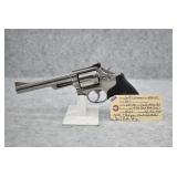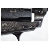 51R.       Smith & Wesson – Mod. 29-10 Factory Engraved – 44 Mag. Cal. Double Action Revolver – w/4” Barrel w/Ramp Front & Adj. Rear Sights – Blued Finish – w/Factory Checkered Wood Grips w/Panel Engraving, Frame, Cylinder & Barrel All Have Small Scroll Engraved Accents – New w/Factory S&W Box, Factory Hard Case, Manual & Tools – Also Accompanied by Factory Wood Presentation Case w/Keys, All w/Shipping Boxes