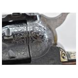 435.        A. Xanthopoulo – Mod. First Quality American Pattern (Colt 1851 Navy Copy) – 35 Cal. Black Powder Percussion Revolver – w/7” Octagon Barrel w/Sights – Gray Finish – w/Engraved Metal Parts – w/Smooth Wood Grips