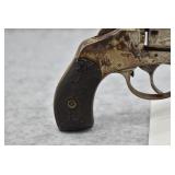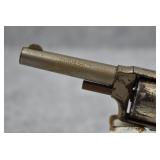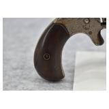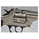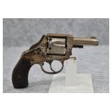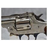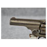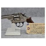 434.        Hopkins & Allen – Mod. Ranger No. 2 – 32 Rimfire Cal. Single Action Revolver – w/2 ¾” Octagon Barrel w/Sights – Nickel Finish – w/Checkered Birds Head Hard Rubber Grips – Tight Gun!