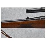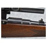 46R.       Winchester – Mod. 70 (Post-64) – 338 Win. Mag. Cal. Bolt Action Rifle – w/24” Barrel w/Hooded Front & Adj. Ramp Rear Sights – Blued Finish – w/Checkered Capped Pistol Grip Wood Stock w/Factory Recoil Pad – w/Redfield 1pc. Scope Base