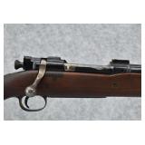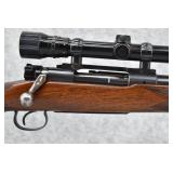 428R.     Winchester – Mod. 70 Standard (Pre-64) – 270 Win. Cal. Bolt Action Rifle – w/24” Barrel w/Blade Front & Flip Up Adj. Folding Rear Buck Horn Sight – Blued Finish – w/Checkered Pistol Grip Wood Stock w/Factory Checkered Metal Butt Plate – w/Sling Loops – w/2pc. Scope Bases – Mfg. in 1950