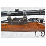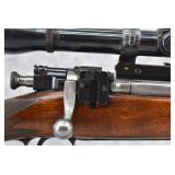24R.       Steyr Daimler – Mod. 3170 Mannlicher Schoenauer – 243 Win. Cal. Bolt Action Rifle – w/22” Barrel w/Hooded Front & 2 Leaf Adj. Rear Sights – Blued Finish – w/Deluxe Checkered Capped Pistol Grip Wood Stock w/Factory Butt Plate – w/Double Set Triggers – w/Brown Leather Sling – w/Bausch & Lomb Balvar 8A 2.5-8x40mm Period Scope & Bausch & Lomb Mounts