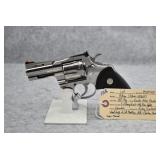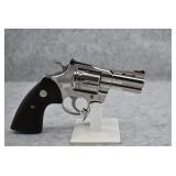 56R.       Colt – Mod. Python (SP3WTS) – Davidsons Exclusive Engraved Special Edition – 357 Mag. Cal. Double Action Revolver – w/3” Vent-Rib Barrel w/Ramp Front & Adj. Rear Sights – Stainless Finish; Frame Cylinder & Barrel Are All Armory Grade Cut Engraved – w/Factory Checkered Wood Grips – New w/Factory Hard Case, Manual & Factory Orange Hang Tag