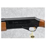 17R.       Remington – Mod. Apache 77 – 22LR Cal. Semi-Auto Rifle – w/19 ½” Barrel w/Blade Front & Adj. Rear Sights – Matte Blued Finish – w/Checkered Capped Pistol Grip Green & Brown Nylon Stock w/Black Diamond Accents, Butt Plate & Forend Cap – No Detachable Mag – w/Factory Box & Manual