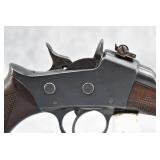 437R.     Remington – Mod. 1901 Target – 44 S&W Cal. Rolling Block Single Shot Pistol – w/10” Octagon to Round Barrel w/Beech Combo Front Sight (Rear Tang Sight Missing) – Case Hardened/Blued Finish – w/Smooth Wood Grips & Forend – w/Lanyard Loop
