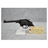 14R.       Colt – Mod. Official Police – 38 Spl. Cal. Double Action Revolver – w/6” Barrel w/Blade Front & Notch Rear Sights – Blued Finish – w/Colt Silver Medallion Checkered Wood Grips
