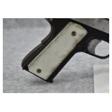 1R.          Colt – Mod. Ace Commercial Model – 22LR Cal. Seim-Auto Pistol – w/4 ¾” Barrel w/Blade Front & Adj. Rear Notch Sights – Blued Finish – w/Checkered Wood Grips – w/Factory Detachable Two-Tone Magazine – Serial #432 – Mfg. in 1931, 1st Year of Production
