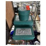 3 PIECE MATCHED GREEN AND METAL TOP BOXES |