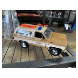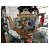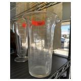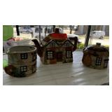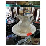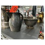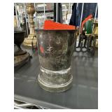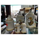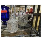VINTAGE GLASS PITCHER & LIDDED JAR W LT GOLD ACCT |